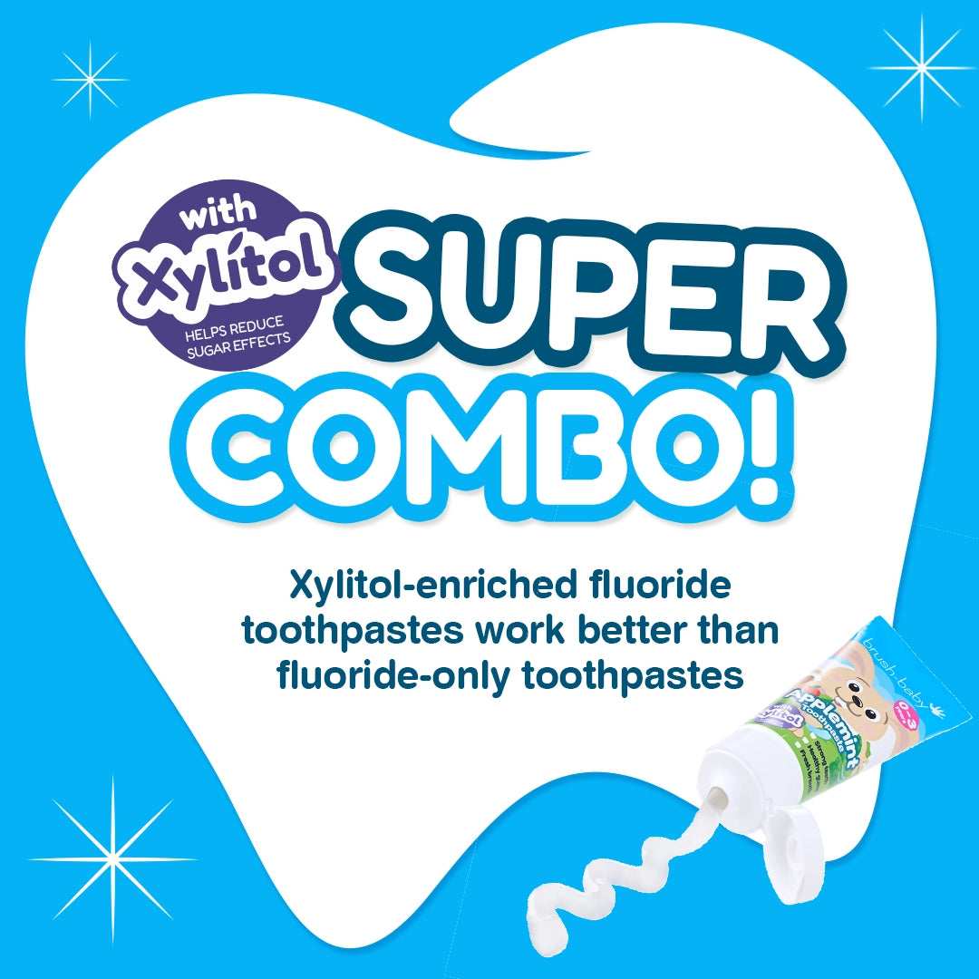 ✅SAFE FOR LITTLE ONES. Our children’s toothpaste is safe for kids as it's SLS FREE, meaning it’s non foaming and is suitable for vegans and vegetarians! Our kids toothpaste also contains Xylitol which reduces sugar acids and fluoride which strengthens milk teeth enamel.