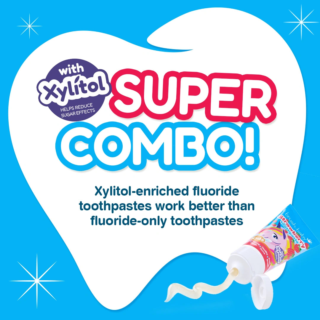 ✅SAFE FOR LITTLE ONES. Our children’s toothpaste is safe for kids as it's SLS FREE, meaning it’s non foaming and is suitable for vegans and vegetarians! Our kids toothpaste also contains Xylitol which reduces sugar acids and fluoride which strengthens milk teeth enamel.